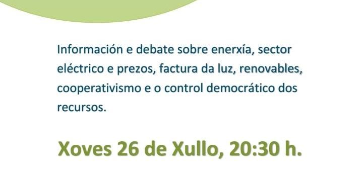 O xoves 26 de xullo, no Fogar Armadiña, contaremos con representación de Nosa Enerxía Sociedade Cooperativa Galega, para informarnos do consumo enerxético social, sostible e galego. Lembrade, no Fogar Armadiña, situado na baixada á Chousa-11...
