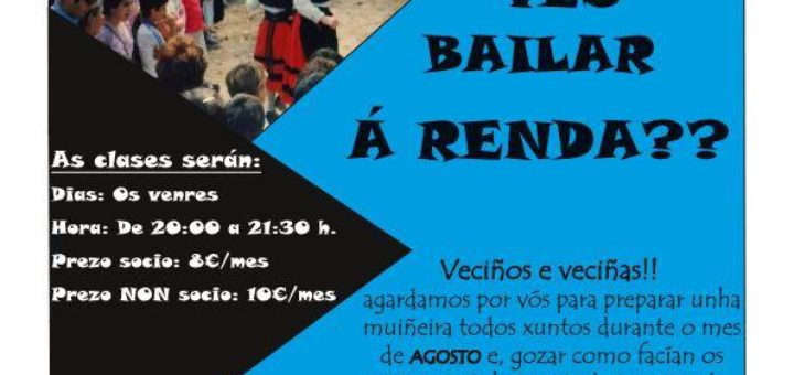 Ves bailar á Renda?¿ Durante o mes de agosto prepararemos unha muiñeira para bailar todos xuntos na Romaría da Renda, en setembro. As clases serán no Fogar Armadiña, os Venres de 20:00 a 21:30...